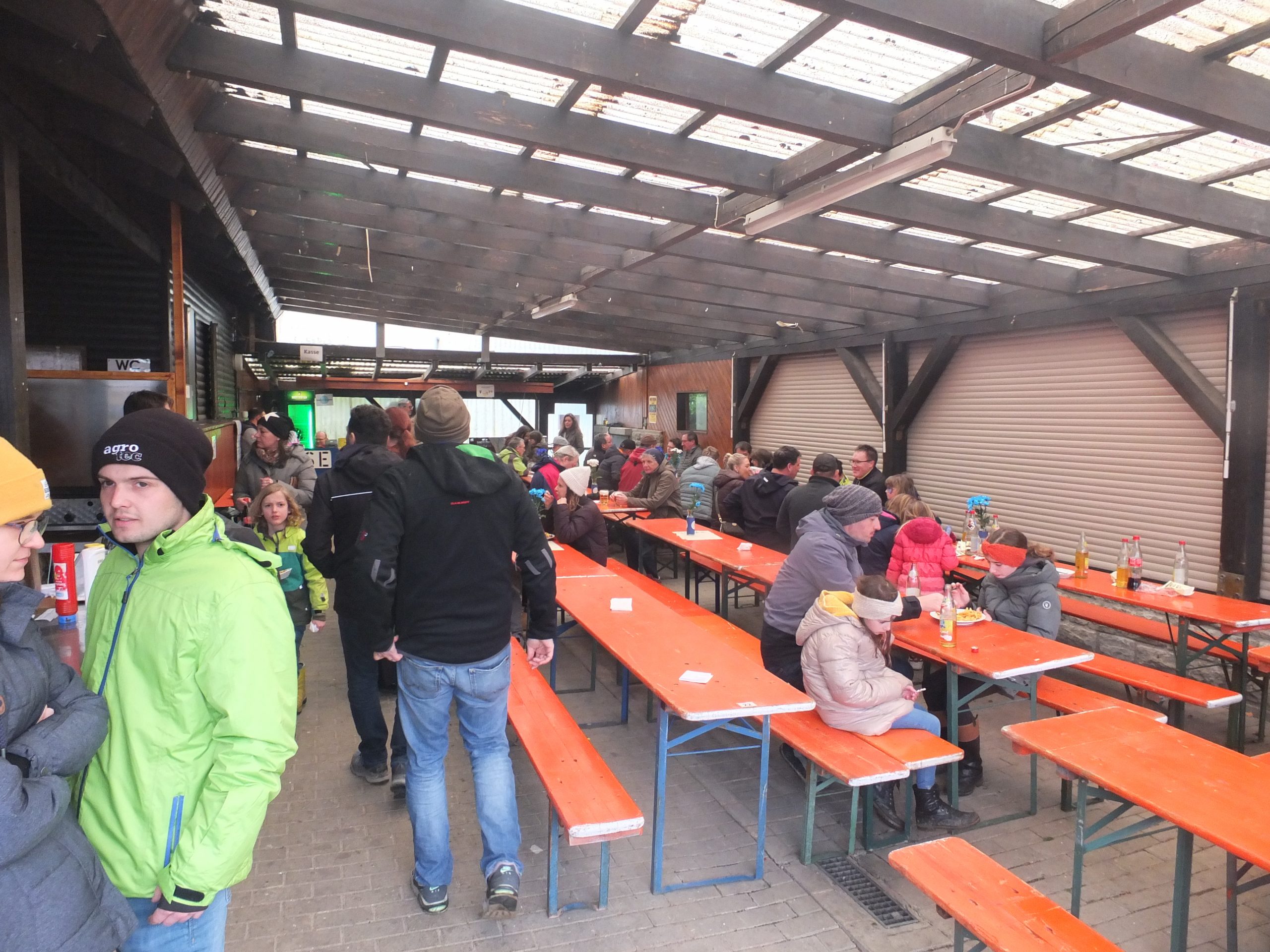Die Pergola war beheizt, der Grill wurde dauerhaft befeuert und auf der Wiese nebenan war ein Lagerfeuer an dem man sich aufwärmen konnte.
