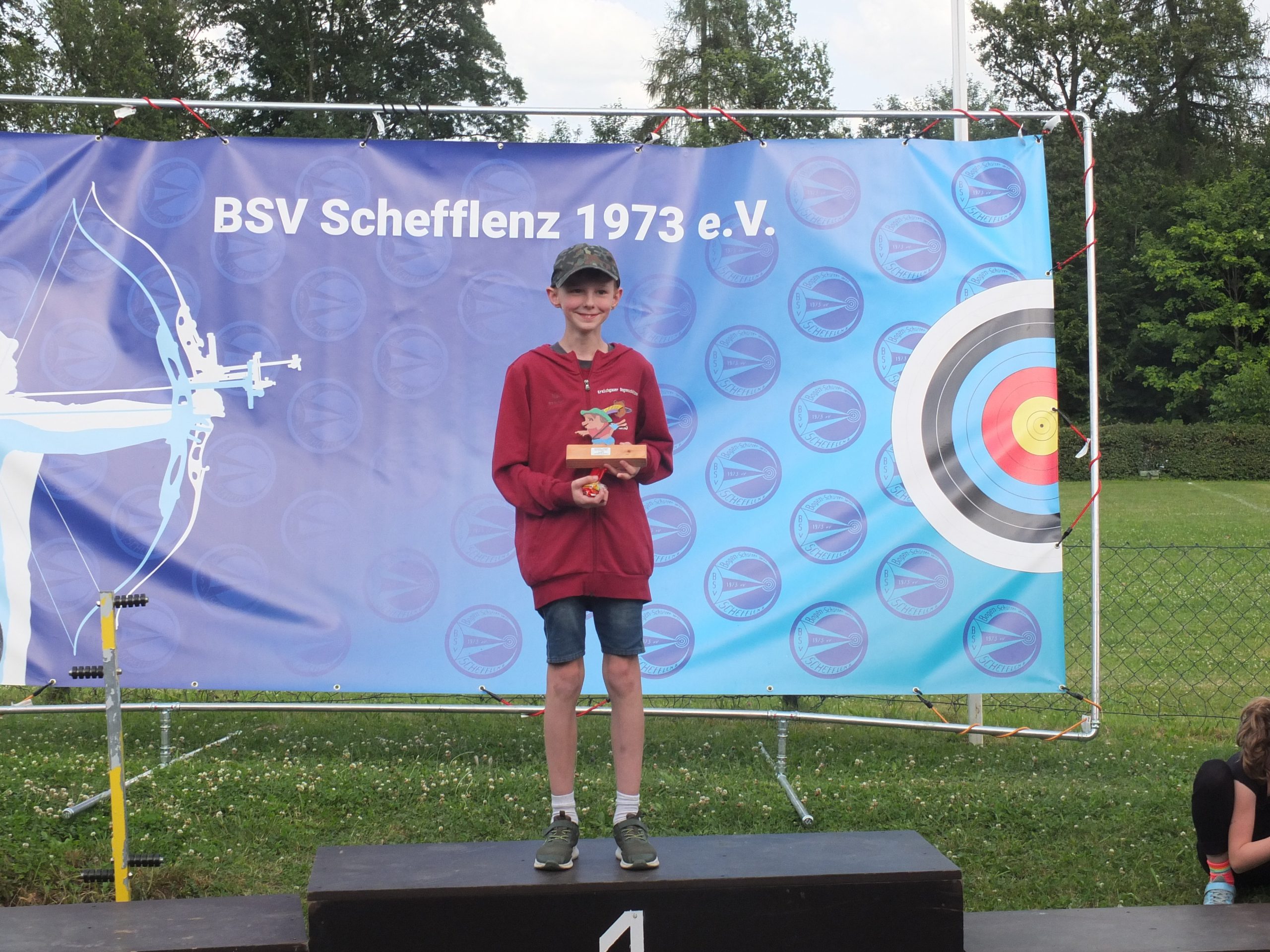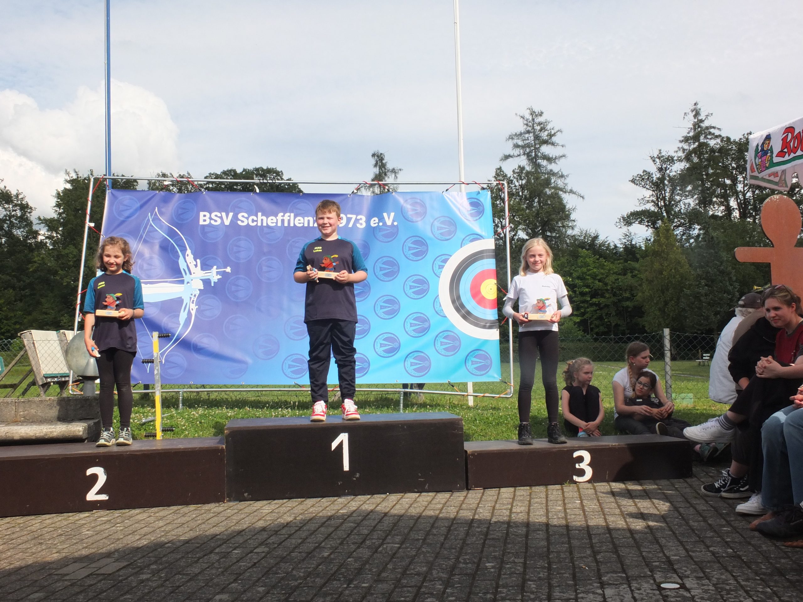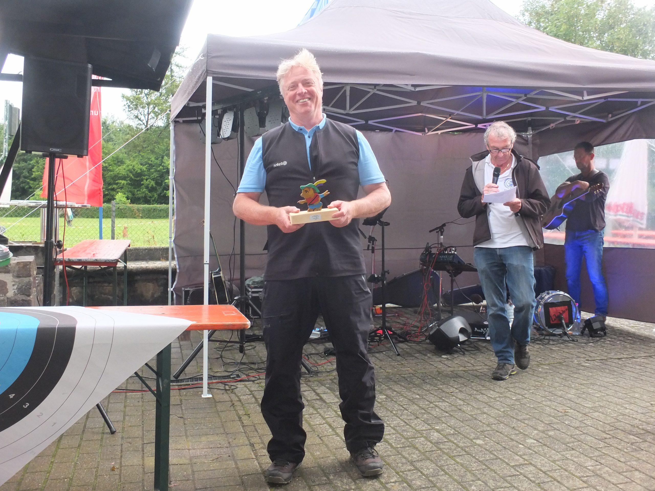 Am Sonntag fand auch eine WA 15/25/30m Runde mit 2×36 Pfeilen statt, die Schüler C schossen 1 x 36 Pfeile da ist die Kraft für 72 Pfeile noch nicht vorhanden. Nach der Siegerehrung für die Scheibenschützen erhielt auch der Kampfrichter Sören Spieckermann einen Erinnerungspokal.