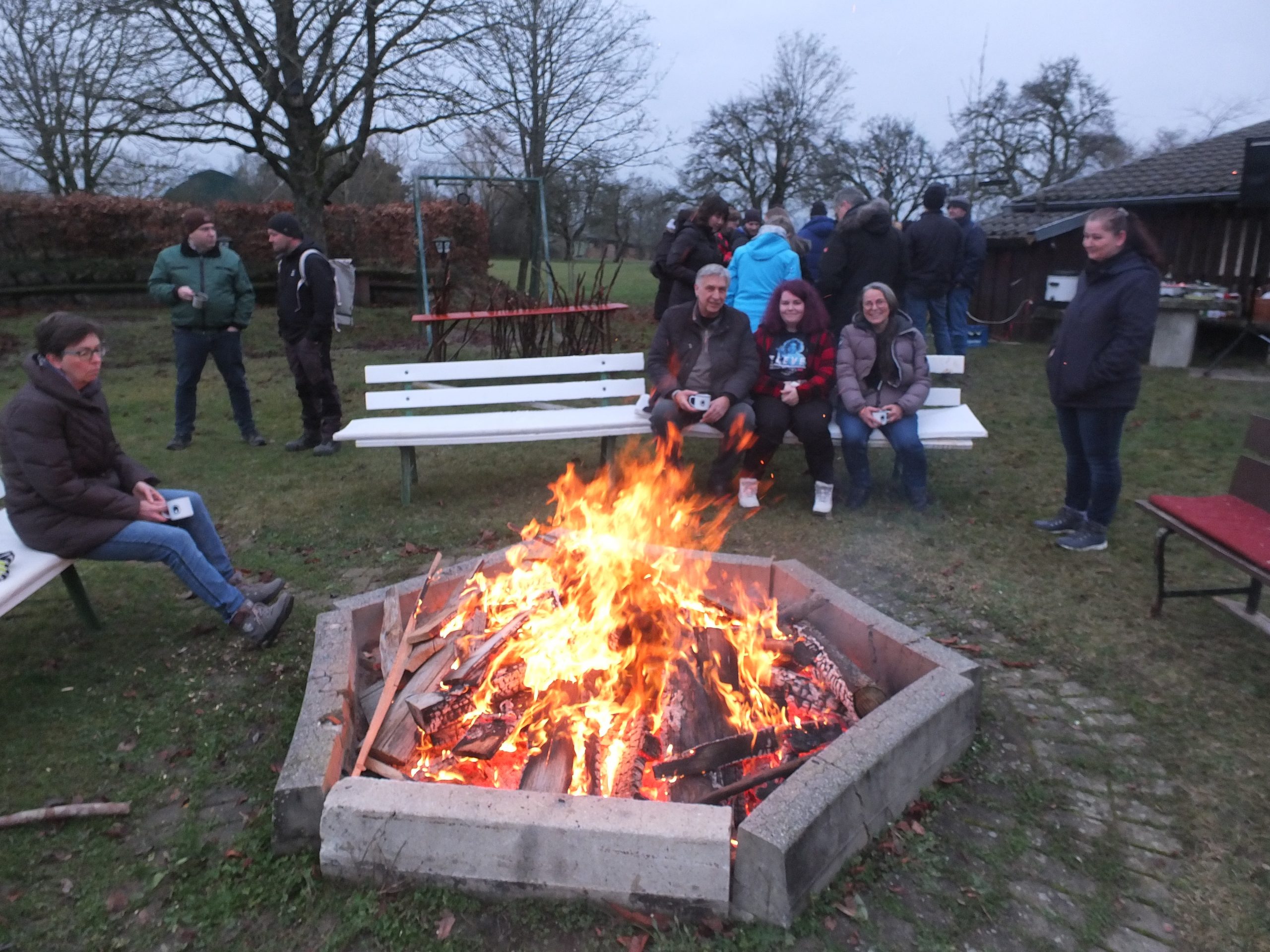 Bei vielen begann das Treffen zum Wintergrillen 2024 mit „ ein gutes neues Jahr “. Ab 14 Uhr begann der Aufbau, Lagerfeuer, Musik, Beleuchtung und alles was dazu gehört. Mit dem Wetter hatten wir Glück, hat es doch die Tage zuvor sehr viel geregnet, es war bewölkt, aber trocken und nicht zu kalt. Nach und nach trafen alle ein. Es gab viel zu erzählen, hatten wir uns doch längere Zeit nicht mehr gesehen. Als unser Lagerfeuer richtig brannte, konnte man sich auch daran wärmen. Später, als genügend Glut vorhanden war ging es ans Stockbrot backen. Viele haben sich besonders darauf gefreut, da es nicht oft die Gelegenheit gibt Stockbrot zu backen. Es kamen auch wieder neue selbstgebaute Geräte zum Einsatz, um Würste zu braten. Es ist zu vermerken, daß die Technik immer ausgereifter wird. Im dunklen kam dann die Beleuchtung zur Geltung und in Verbindung mit Musik und dem Lagerfeuer war es eine schöne, gemütliche entspannte Runde, um das Lagerfeuer. Der Abschluss fand dann am Tresen im Clubheim statt. Danke an alle die zum guten Gelingen des Wintergrillens beigetragen haben. ( Bilder e.h. j.h. )